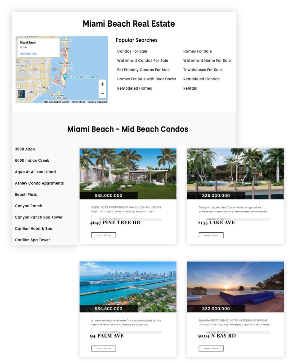 Search the most popular property types with one-click! We have years of experience and a deep understanding of the most popular real estate searches. We put our extensive knowledge to work for you by creating thousands of pre-saved searches by area. Searches include direct links to specific neighborhoods, condo buildings, property types, and more. Not sure exactly what you are looking for? Start here! With one-click you can get started on the path to finding your dream home. Once you find inspiration here, you can easily filter results further.
